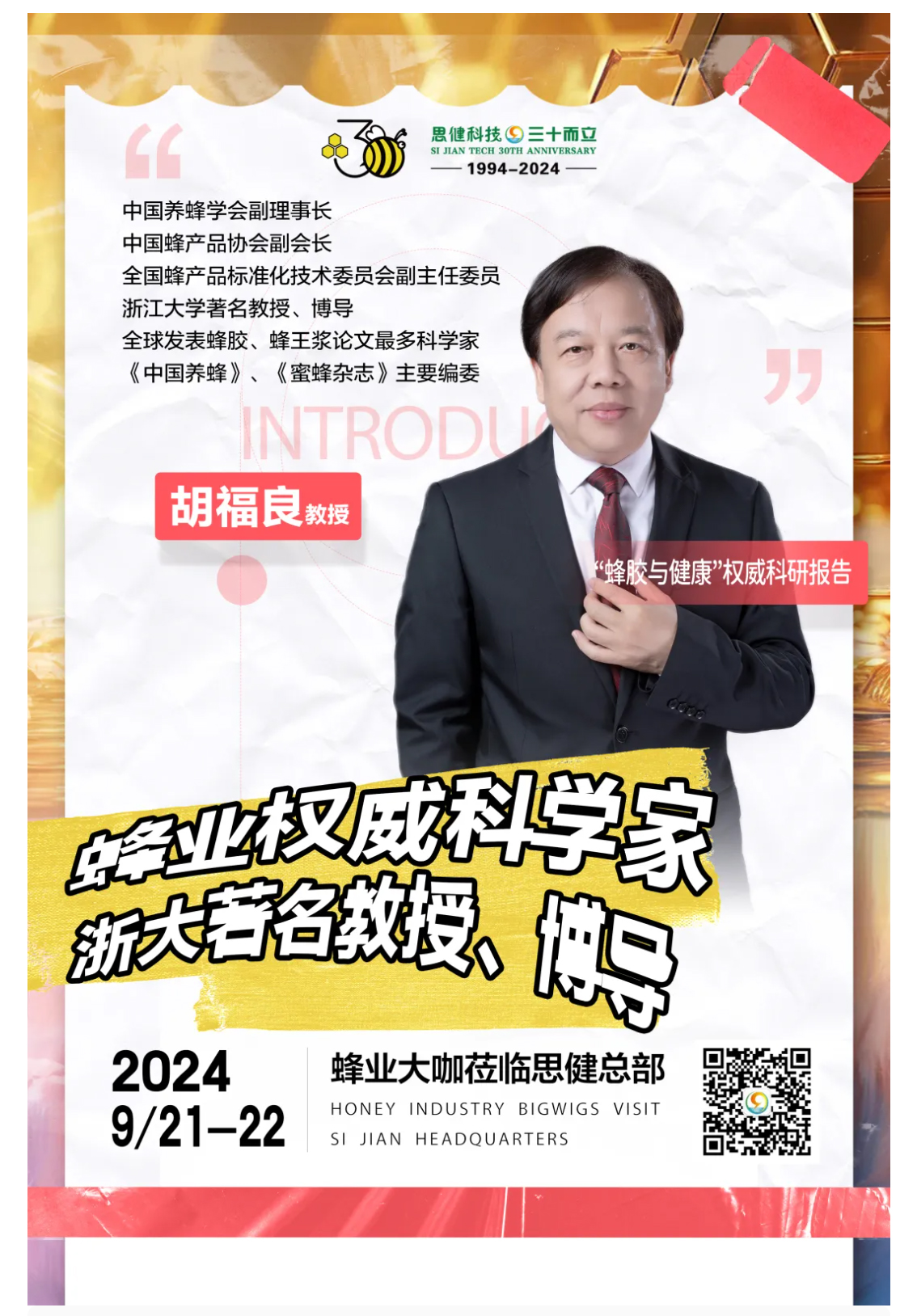 國家蜂業(yè)崗位科學(xué)家胡福良教授來廈做“蜂膠與健康”科普講座